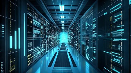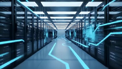 Futuristic Server Room With Blue Digital Light Trails Concept Videos