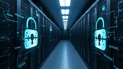 Futuristic Server Room With Digital Matrix Animation Videos