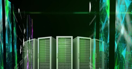Futuristic Server Room With Plexus And Abstract Shapes Videos