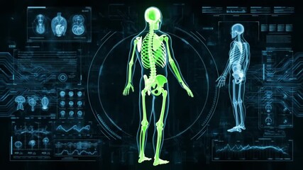 Futuristic Skeleton With Data Visualization Abstract Background Videos