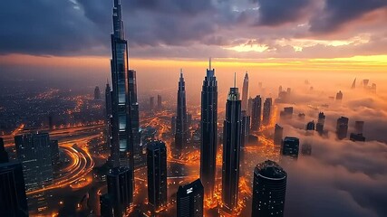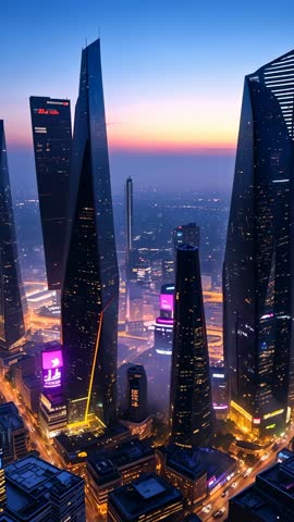 Futuristic Skyscrapers Illuminated In Urban Metropolis At Dusk Videos