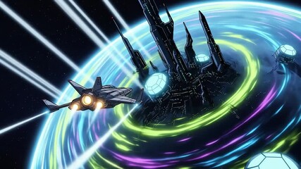 Futuristic Spacecraft Cluster Navigating Nebula Videos