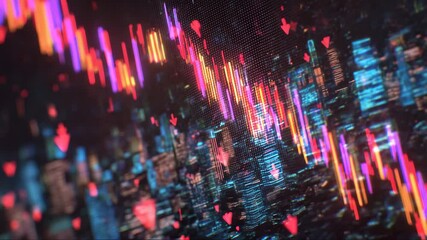 Futuristic Stock Market Data Animation Over Cityscape Videos