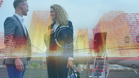 Futuristic Technology Data Interface With Business Professionals Overlay Videos