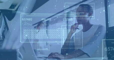 Futuristic Technology Data Interface With Business Professionals Overlay Videos