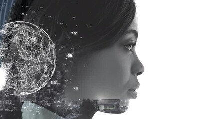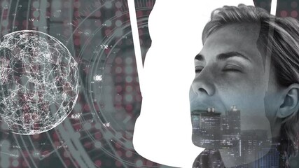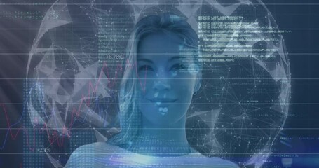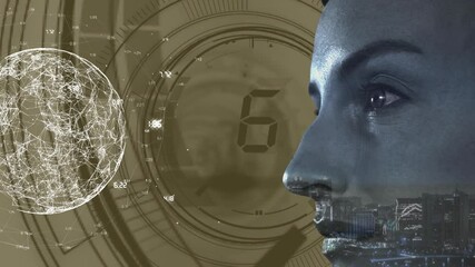 Futuristic Technology Interface Over Womans Face With Digital Globe Videos