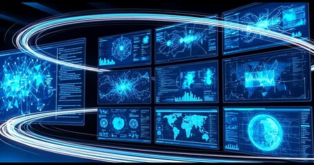 Futuristic Technology Interface With Light Trails And Data Visualization Videos