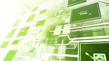 Futuristic Virtual Network Interface With Green Digital Displays Videos