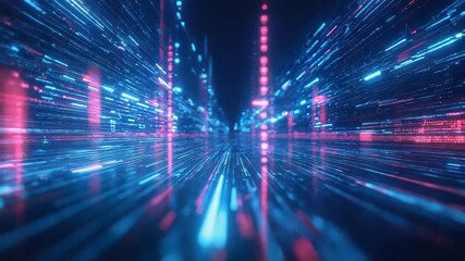 Futuristic Virtual Server Room With Digital Data Flow Videos