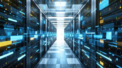 Futuristic Virtual Server Room With Digital Data Flow Videos