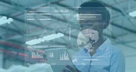 Futuristic Warehouse With Digital Data Visualization In Focus Videos