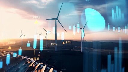 Futuristic Wind Turbine With Financial Data Overlay Videos