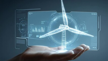 Futuristic Wind Turbines With Digital Data Visualization Videos