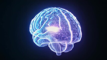 Futuristic Wireframe Brain Rotating In Dark Background Videos