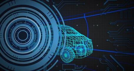 Futuristic Wireframe Car With Digital Display Interface Videos