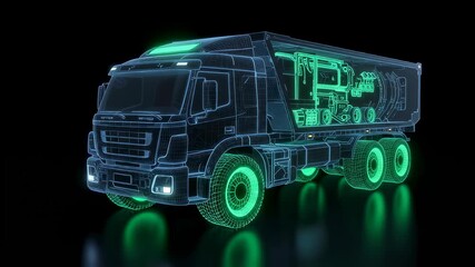 Futuristic Wireframe Truck With Data Visualization Elements Videos