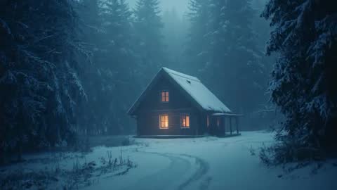 snow-covered cabin