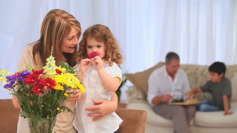 smelling flowers