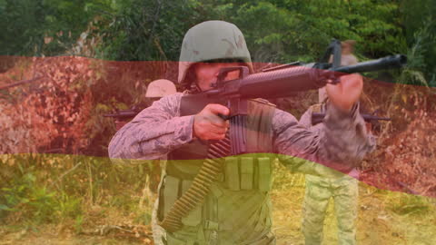 German Flag Overlay With Soldiers In Motion Videos