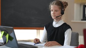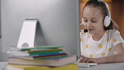 Girl Engaged In Online Learning With Interactive Technology Overlay Videos
