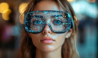 Girl Exploring Virtual Reality With Futuristic Data Overlay Videos