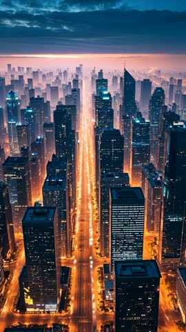 Gliding Drone Vertical Video Of Illuminated Main Avenue Led Billboard And Downtown Skyline Videos