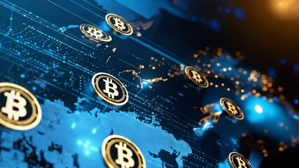 Global Bitcoin Cryptocurrency Network Over Virtual World Map Videos