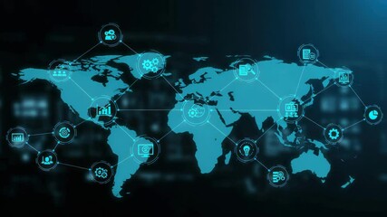 Global Business Data Processing With World Map Overlay Videos