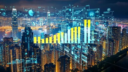 Global Business Interface With Cityscape Background Videos