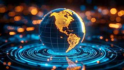 Global Data Network Over World Map On Digital Grid Videos