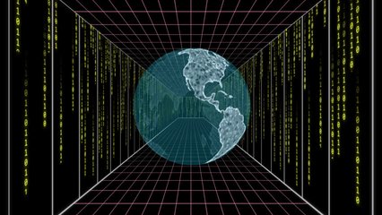Global Data Processing Concept With Binary Code Over Earth Videos