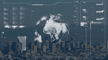 Global Data Processing Over Cityscape With Digital Interface Graphics Videos