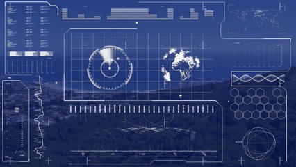 Global Data Processing Technology Interface With Portrait Overlays Videos