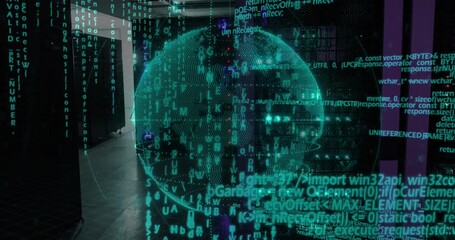 Global Data Processing With Spinning Globe Animation In Server Room Videos