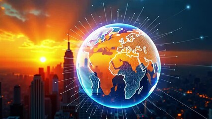 Global Digital Network Connectivity Over Earth Visual Videos