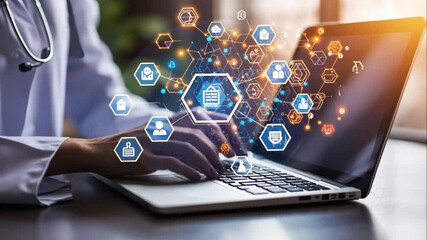 Global Digital Network Visualization On Laptop Display Videos