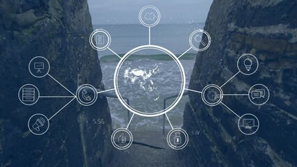 Global Digital Network With Security Icons Over Virtual Interface Videos