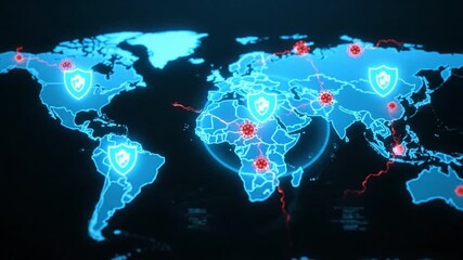 Global Digital Security Map Illustration With Network Graphics Videos