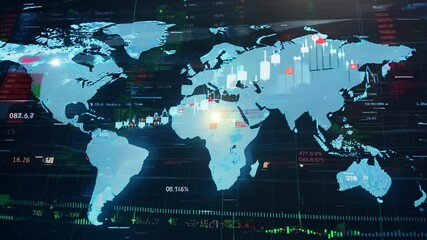 Global Financial Data Analytics Displayed On Digital World Map Videos