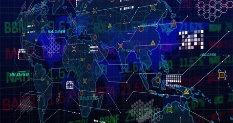 Global Financial Data Animation Over World Map Videos