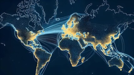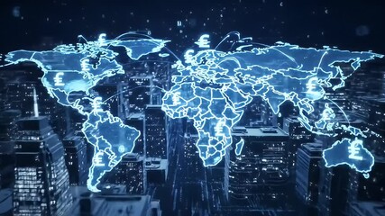 Global Financial Data Illustration On Dark World Map Videos