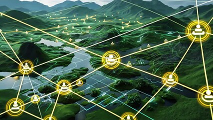 Global Network Connections Over Rural Landscape Videos