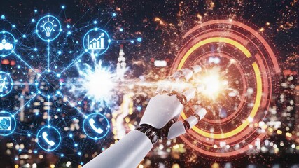 Global Network Interface With Skyline Background Videos