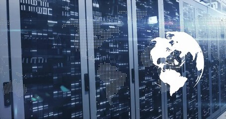 Global Network With Rotating Overlay Against Server Room And Data Center Videos