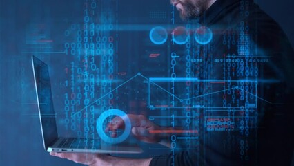 Global Networking And Data Analysis Concept With Laptop And Statistics Videos