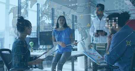 Global Team Collaborating With Digital Technology Overlay Videos