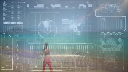 Global Technology Interface With Walking On Beach Videos