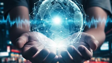 Globe And Data Streams In Digital Network Animation Videos