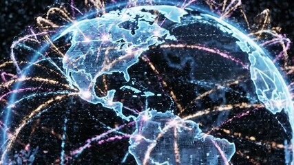 Globe And Data Streams In Digital Network Animation Videos