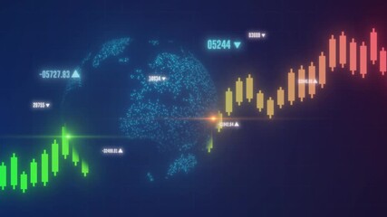 Globe And Financial Graphs Visualization On Digital Background Videos